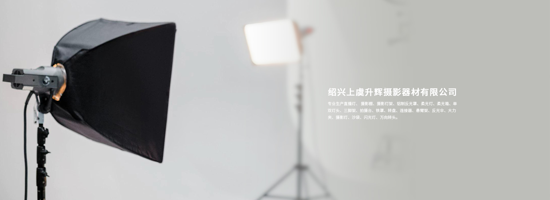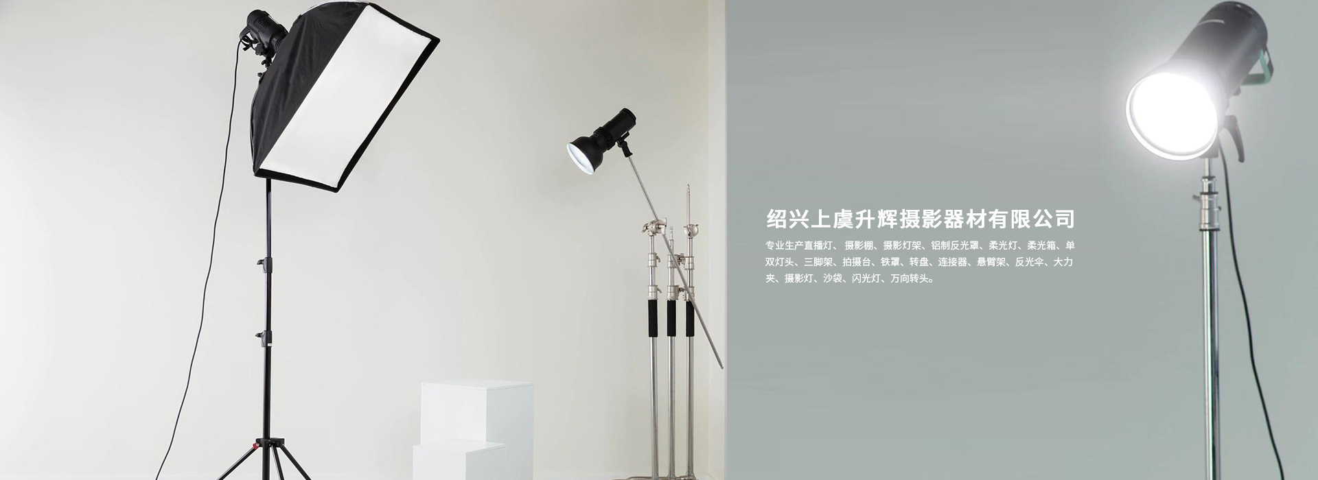 紹興上虞升輝攝影器材有限公司專業(yè)生產(chǎn)直播燈、 攝影棚、攝影燈架、鋁制反光罩、柔光燈、柔光箱、單雙燈頭、三腳架、拍攝臺(tái)、鐵罩、轉(zhuǎn)盤(pán)、連接器、懸臂架、反光傘、大力夾、攝影燈、沙袋、閃光燈、萬(wàn)向轉(zhuǎn)頭。